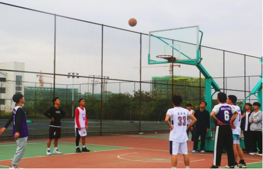 随后,由21自动化和19测控进行第一场比赛,邀请了杨主任开球。高高抛起的蓝球点燃了本届迎新杯的激情,宣告了此次篮球比赛正式拉开帷幕。双方对员抢球、断球、进攻、防守,默契的传球、完美的配合、激烈的争夺,赢得了场下观众的阵阵喝彩声。