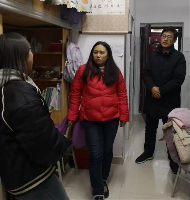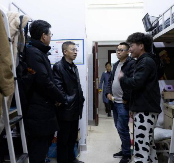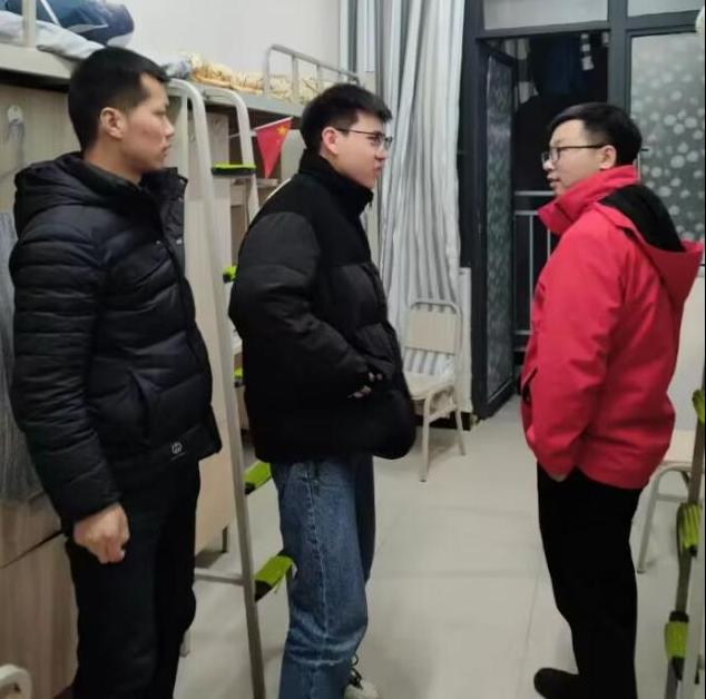 学子新学期在学习、生活、就业等方面的情况 ,进一步加强宿舍安全隐患排查,2月26日晚上20:00,院党委书记王燕妮、院长李伟民、党委副书记管延庆带领辅导员、班主任、学生干部进行走访寝室和安全教育活动。