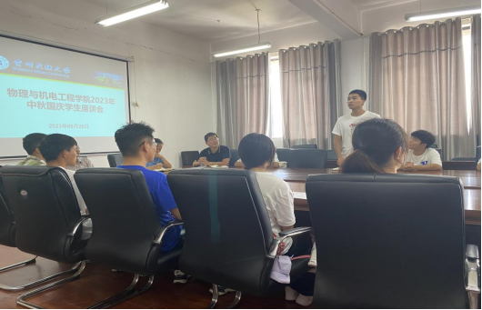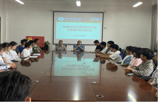 在418会议室举行2023年中秋、国庆学生慰问座谈会。学院党委书记王燕妮、院长李伟民、党委副书记管延庆出席会议,学院辅导员、班主任、退役复学士兵、生活困难学生、新生代表参加会议。