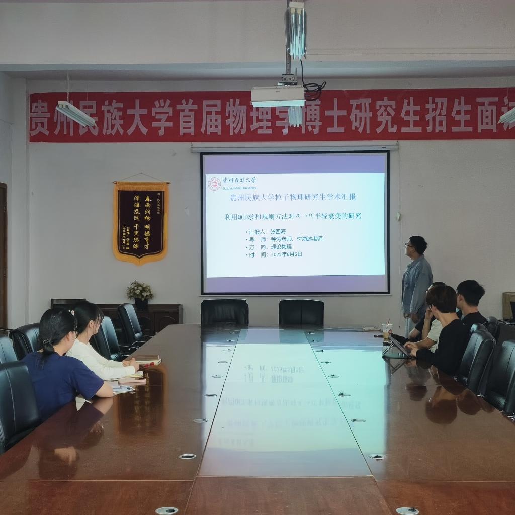 报告首日(62日),由22级研究生田海江做开场报告,主题为《QCD求和规则方法及其在介子分布振幅的应用》。他系统介绍了该方法的理论基础、核心计算框架及实际应用,并进行了1小时的深入讲解。报告期间,与会同学积极提问,尤其对低年级研究生具有重要启发意义,为本次系列报告奠定了良好的学术氛围。