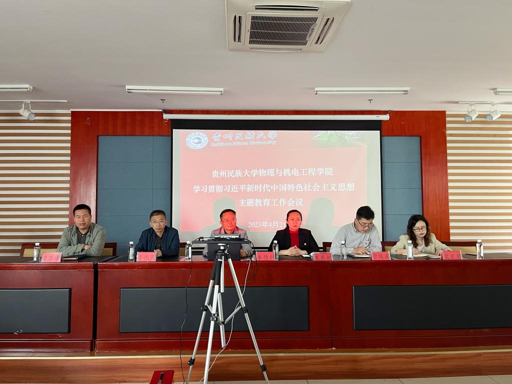 在学生活动中心2001会议室召开学习贯彻习近平新时代中国特色社会主义思想主题教育工作会议,深入学习贯彻习近平总书记重要讲话精神和党中央主题教育工作会议精神,落实贵州省委和校党委主题教育工作要求,部署物电学院主题教育工作。学校第六指导组组长到会指导,学院全体党员参加会议,会议由学院党委副书记、院长李伟民主持。