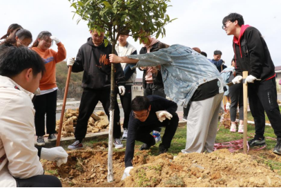 朝气勃发的学子们在大学城校区参加义务植树活动。校党委副书记张鹏程与广大师生一起为美丽的校园增添绿色,种植属于自己的希望之春。