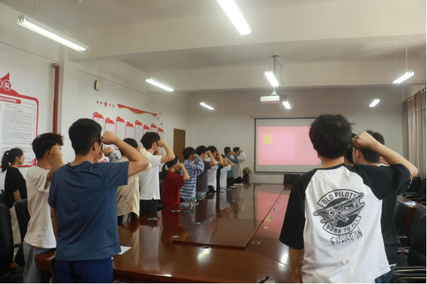 入团仪式在庄严的国歌声中拉开帷幕,参会师生全体起立,唱响国歌。随后主持人宣布25名新团员名单。随后由赵洪老师带领全体参会人员进行入团宣誓,全体参会人员右手握拳,以饱满的精神面貌向团组织坚定表明为共产主义事业而奋斗的理想信念。