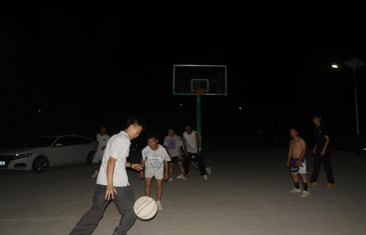 傍晚的篮球友谊赛上,服务队员与村民同场竞技,场边自发组成的啦啦队热情加油。学生们由衷赞叹:“这些大学生哥哥姐姐真厉害,打球好,懂的科学知识也多!”