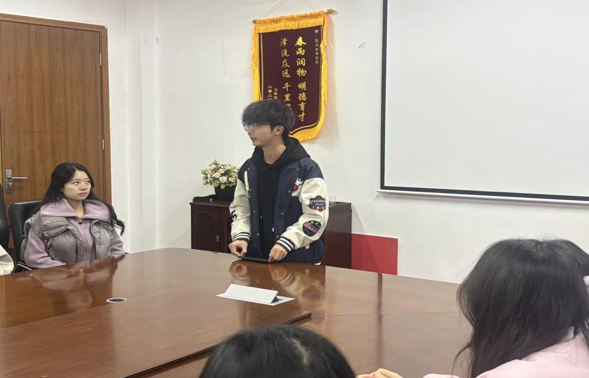 随后,新成员依次登台自我介绍。“我擅长活动策划,期待在实践中锻炼组织能力”“希望用新媒体技能为分团委宣传工作添砖加瓦”,一句句充满朝气的表达,既展现了新成员的特长与热情,也让新老成员在坦诚交流中快速拉近距离、建立联结。