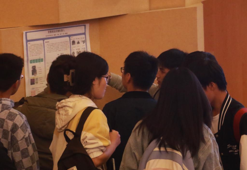 讲台上,各组学生代表激情演讲,为大家分享了他们两个月的设计历程和充满了汗水与努力的作品,设计各有千秋,赢得了大家的掌声,调动了大家的热情。他们用朝气蓬勃的热情,驱赶科研路上的阴霾,给校园科研力量增添了满满的生机与活力。在经过2小时的激烈角逐,各个学生代表的演讲和现场的观摩探讨结束,每个现场师生都为自己喜爱的作品投出了自己珍贵的一票。