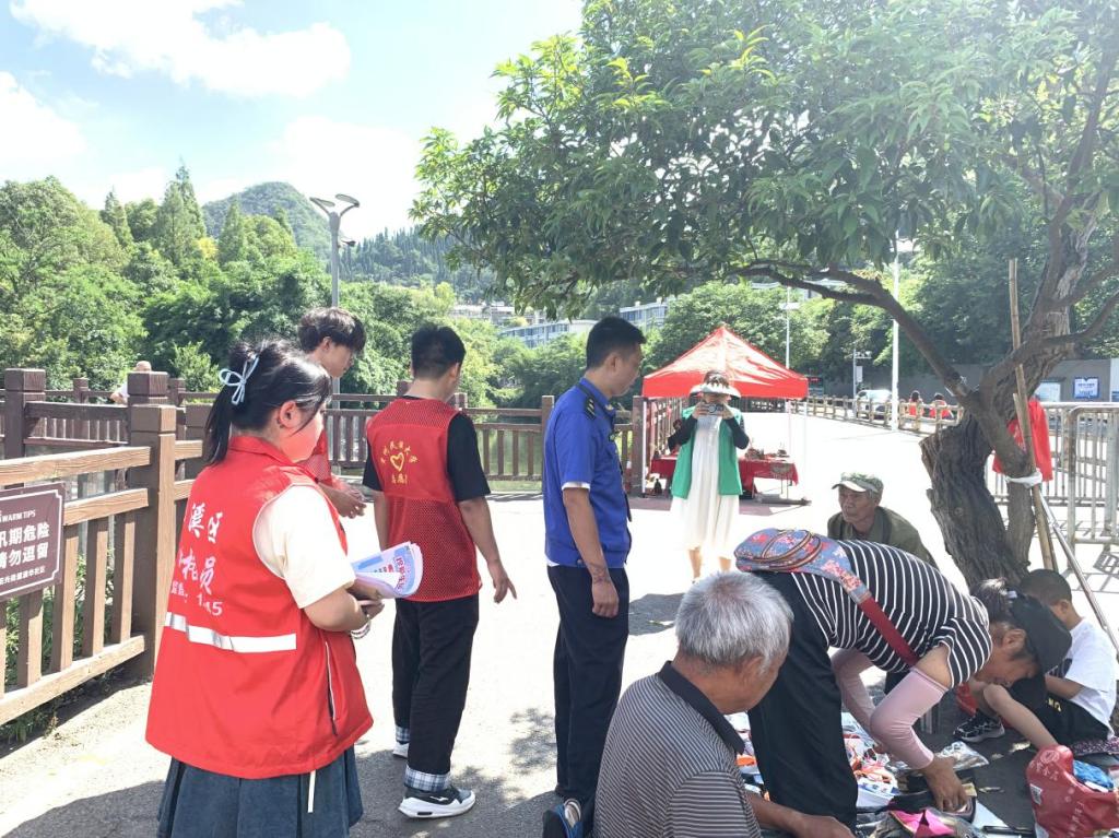 此外,实践队队员还协助阳光街道清华社区,配合城管对花溪河道的摊贩“乱摆摊”现象进行劝导。